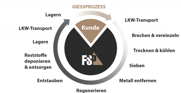 Mit FSP setzen Sie auf ein Rundum-sorglos-Paket für die Aufbereitung von Gießereisanden. Sie müssen keine eigene Regenerierungsanlage anschaffen, keine Genehmigungsverfahren durchlaufen und keine zusätzlichen Peripheriegeräte installieren. Das spart Kapital und entlastet Ihre Organisation spürbar. Gleichzeitig reduzieren wir Ihre Kosten für Neusand, Energie, Personal und Entsorgung.